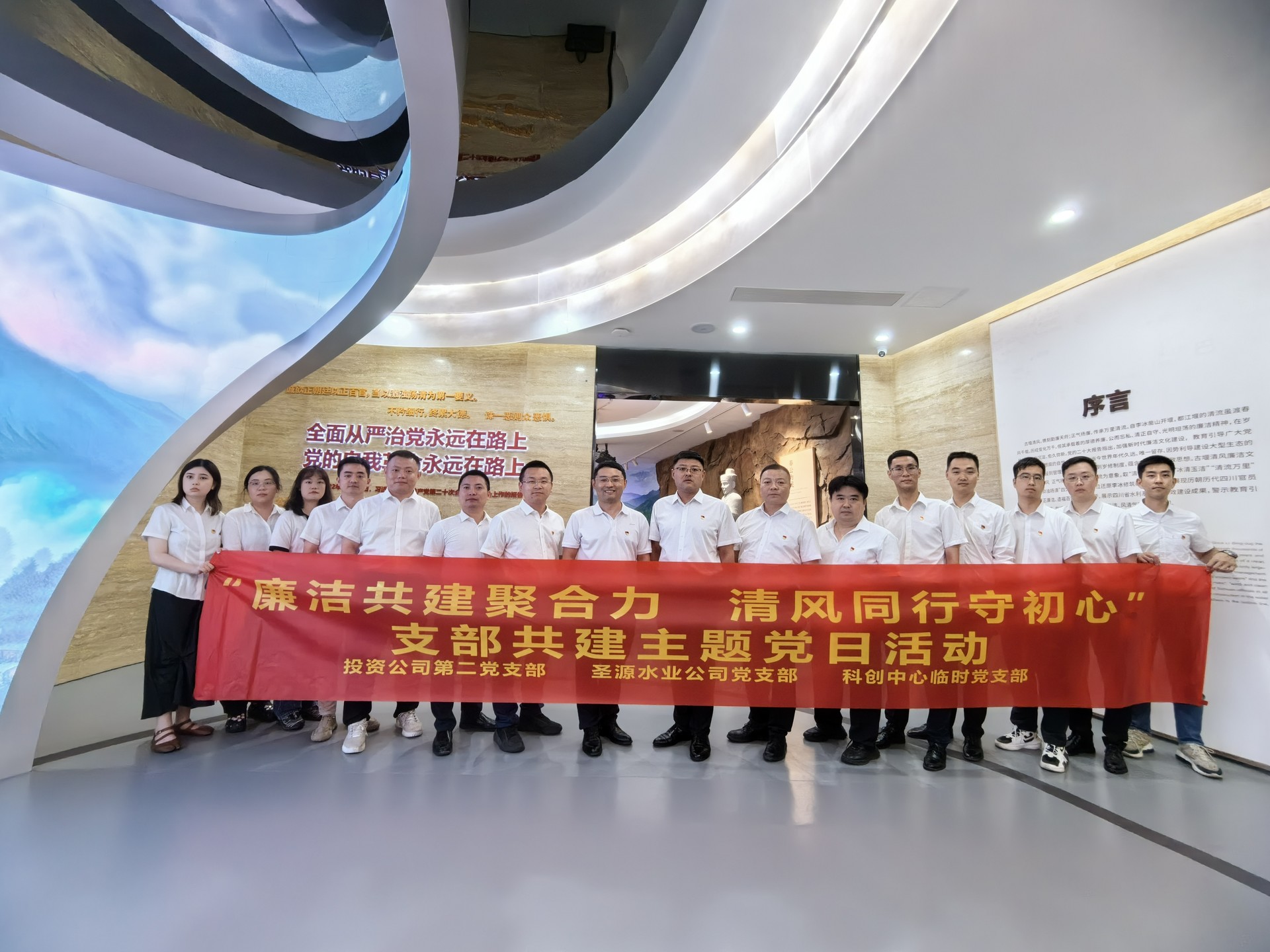 為落實(shí)公司黨委關(guān)于開展基層黨組織結(jié)對(duì)共建活動(dòng)的有關(guān)要求,共同促進(jìn)黨紀(jì)學(xué)習(xí)教育聯(lián)學(xué)共進(jìn),6月27日,投資公司第二黨支部、圣源水業(yè)公司黨支部、科創(chuàng)中心臨時(shí)黨支部帶領(lǐng)全體黨員赴四川省都江堰水利發(fā)展中心“古堰清風(fēng)”廉潔文化館開展主題黨日活動(dòng)。