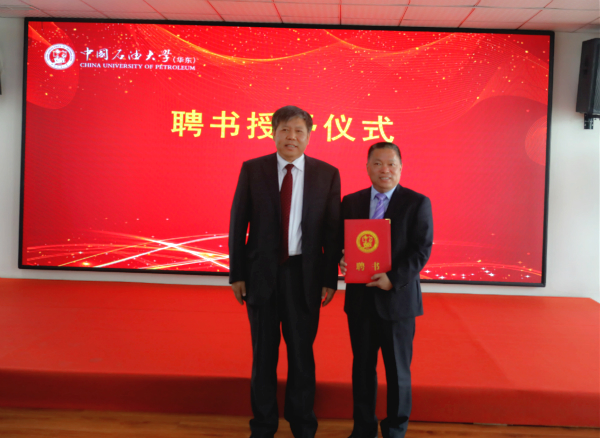 后,郝芳校長代表中國石油大學(華東)向我司董事長張新功頒發兼職教授聘任證書。