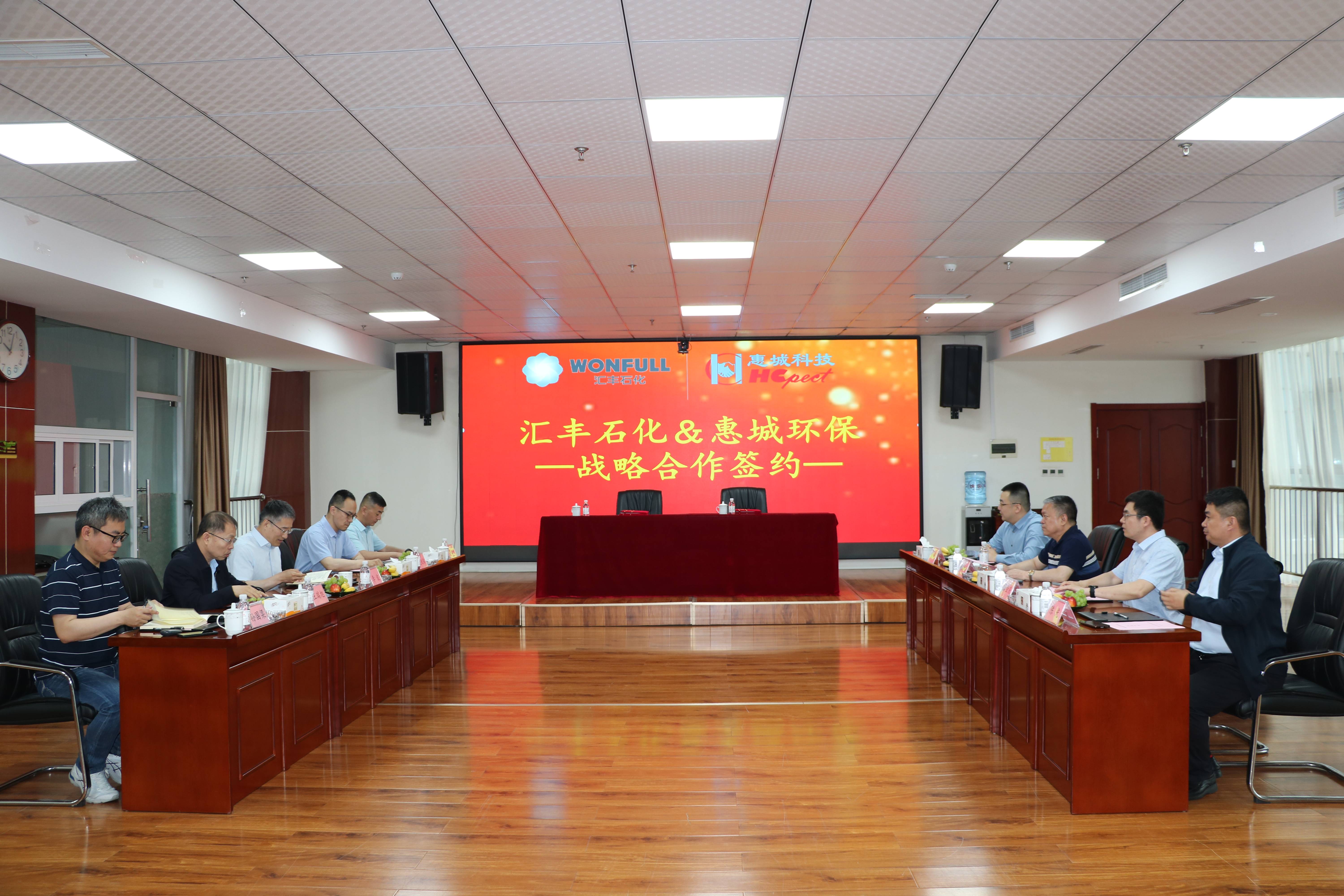 為進一步推動綠色循環經濟高質量可持續發展,加快先進環保技術成果轉化落地,5月18日,青島惠城環保科技集團股份有限公司(以下簡稱“惠城環保”)與山東匯豐石化集團有限公司(以下簡稱“匯豐石化”)戰略合作簽約儀式在惠城環保研發大樓418會議室隆重舉行。匯豐石化總裁李波、總工程師王瑞旭,惠城環保創始人張新功、總經理林瀚等出席簽約儀式。